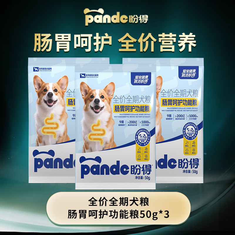 【盼得肠胃呵护功能犬粮】低敏易吸收增免疫高活性益生菌草本精粹犬粮50g3包