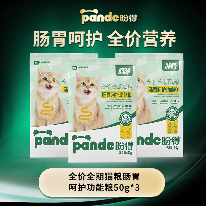 【盼得肠胃呵护功能粮】高活性益生菌草本精粹低敏易消化猫粮50g3包