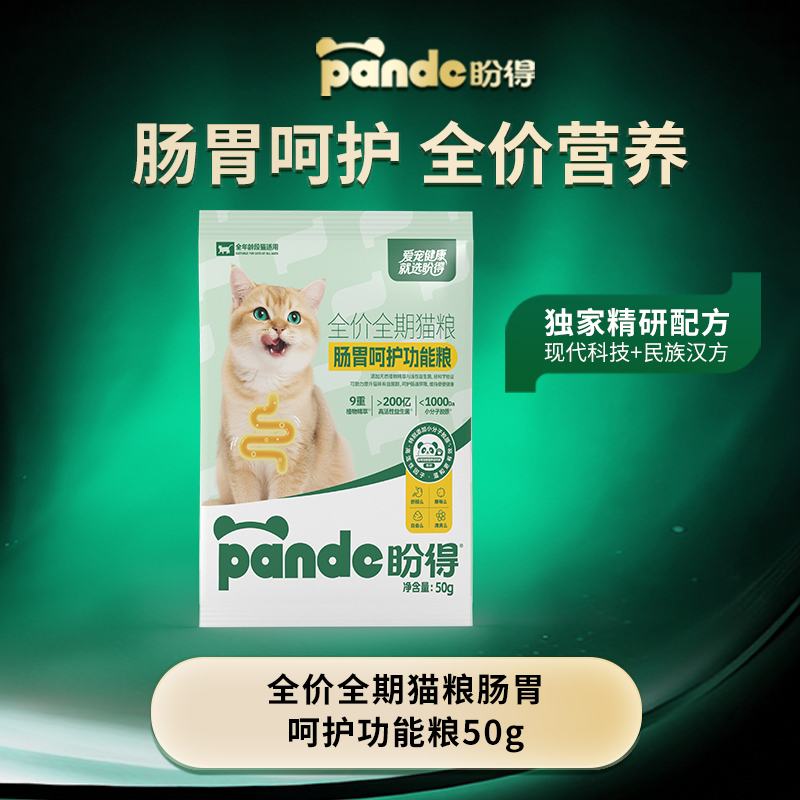 【盼得肠胃呵护功能粮猫粮】高活性益生菌草本精粹低敏易消化猫粮50g