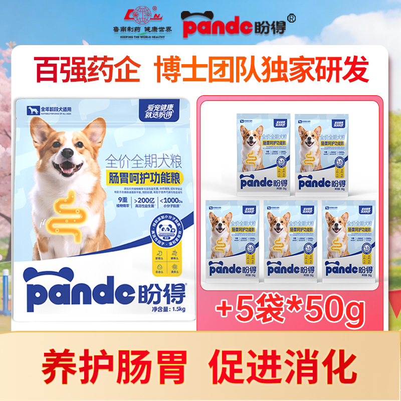 【盼得肠胃呵护功能犬粮】肠胃呵护促消化预防软便益生菌草本植萃配方缓解便秘腹泻增免疫1.5kg+50g*5